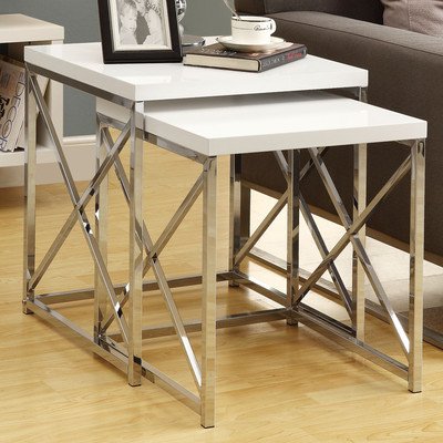 At first I was not sure of the performance of this product, but after my friend recommend I try to buy it. First impressions after using this product is easy to use, more features, great performance and price Monarch Specialties Glossy White and Chrome Metal Nesting Table Set, 2-Piece is cheaper when compared to brands and similar products. If you are a busy person and do not have much time to just look to the store, I suggest you try Monarch Specialties Glossy White and Chrome Metal Nesting Table Set, 2-Piece. And here's a more detailed product specifications review